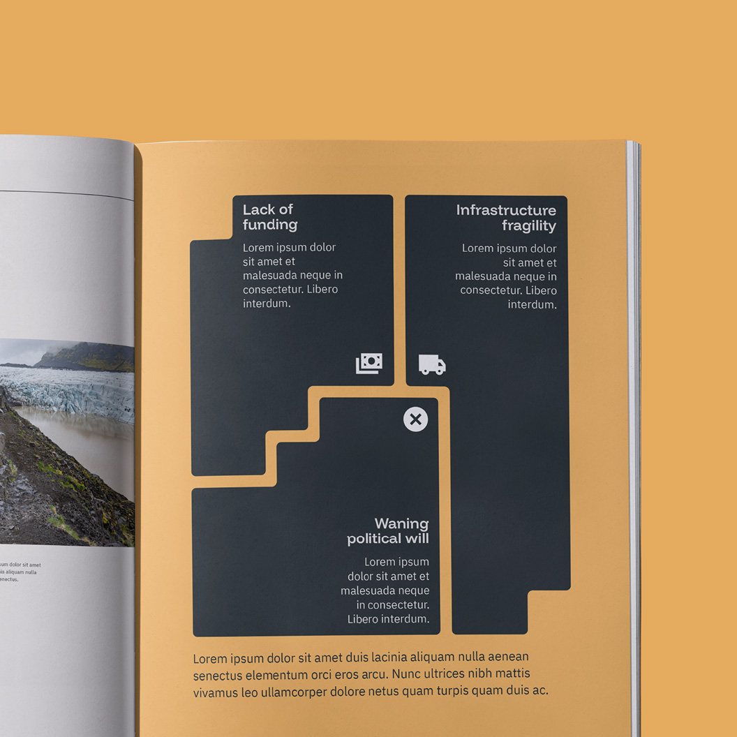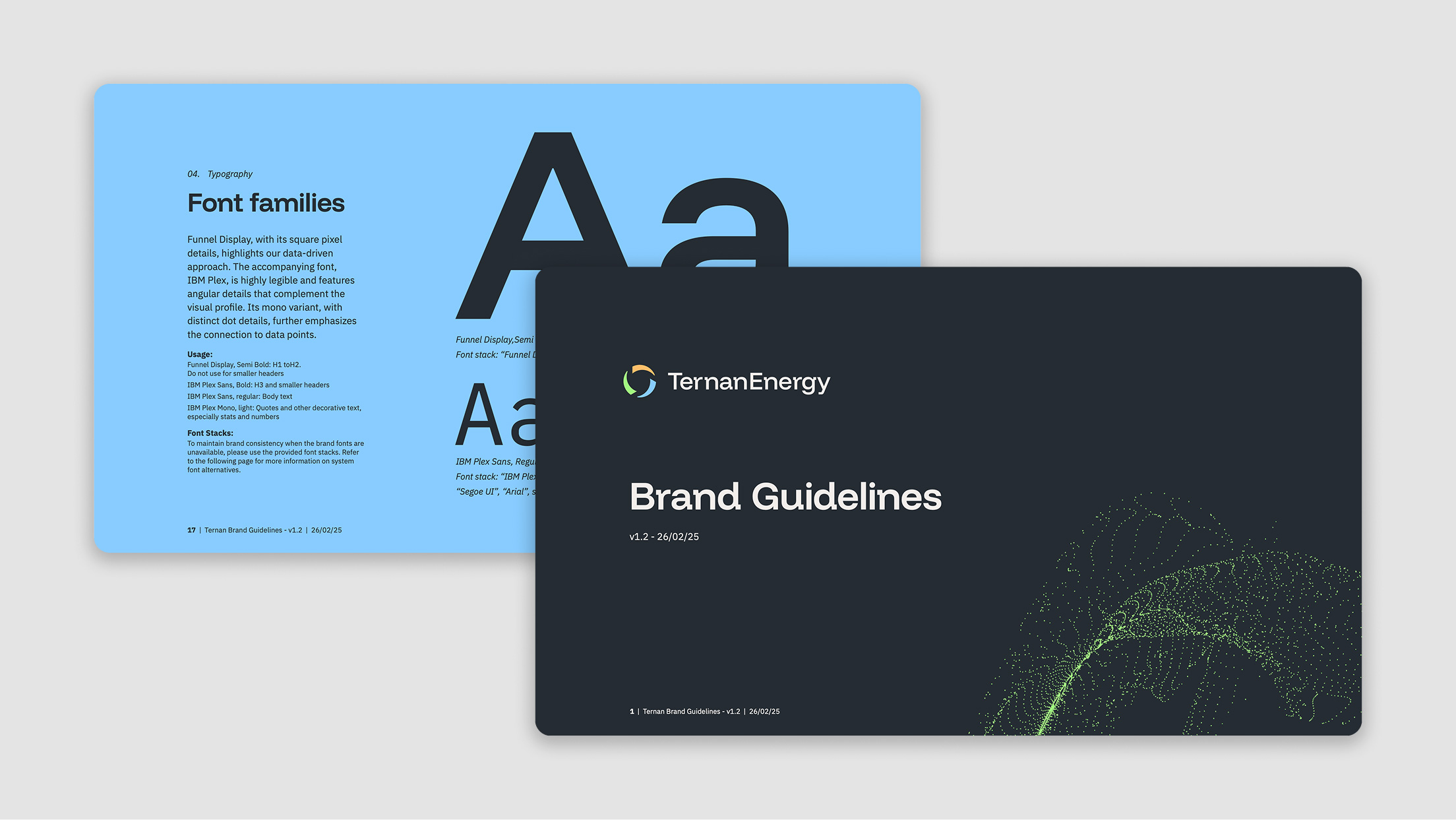 I created a comprehensive brand guidelines document with detailed instructions on how to apply the identity consistently. A key deliverable was a suite of sales materials, including brochures for Ternan’s services and templates for their core product: technical reports. These assets are used regularly and play a vital role in elevating the brand’s presence.