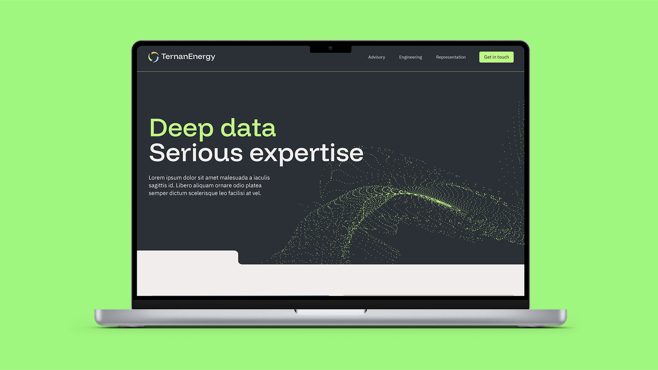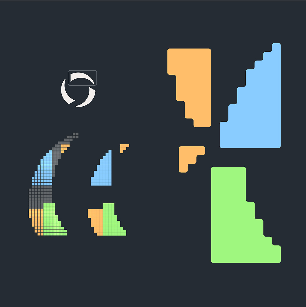 Ternan’s visual language is built around shapes inspired by pixels and single data points. These elements connect seamlessly with the typography, reinforcing a sense of deep expertise while also serving as a versatile design detail that can be applied across many contexts.