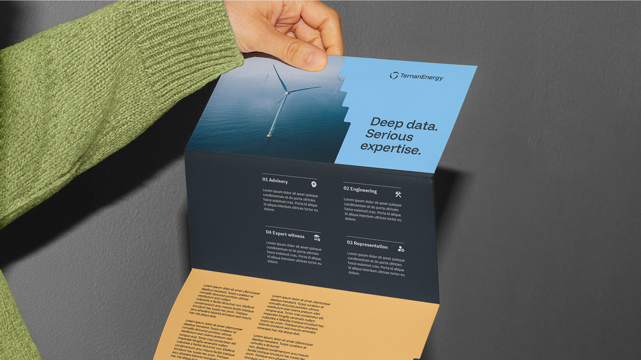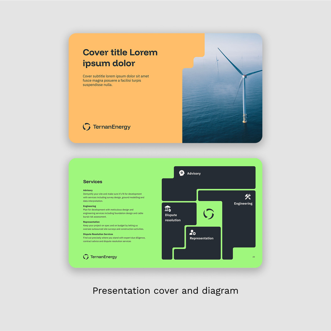 Ternan is an energy consultancy focused on preparing offshore sites for wind farms. Their brand had gone untouched for years, which made it difficult to communicate their services consistently across different channels.Â