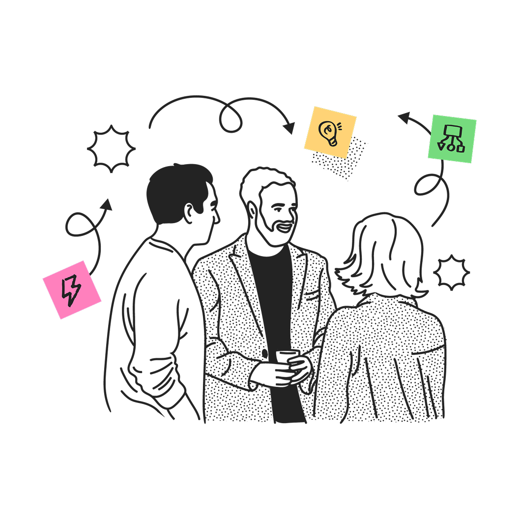 Pitch events encourage the exchange of ideas between attendees and judges. To convey this, I used icons on Post-it notes and arrows to represent this intermingling of ideas. The logo focuses on the Pitch itself, the ultimate goal of the brand.